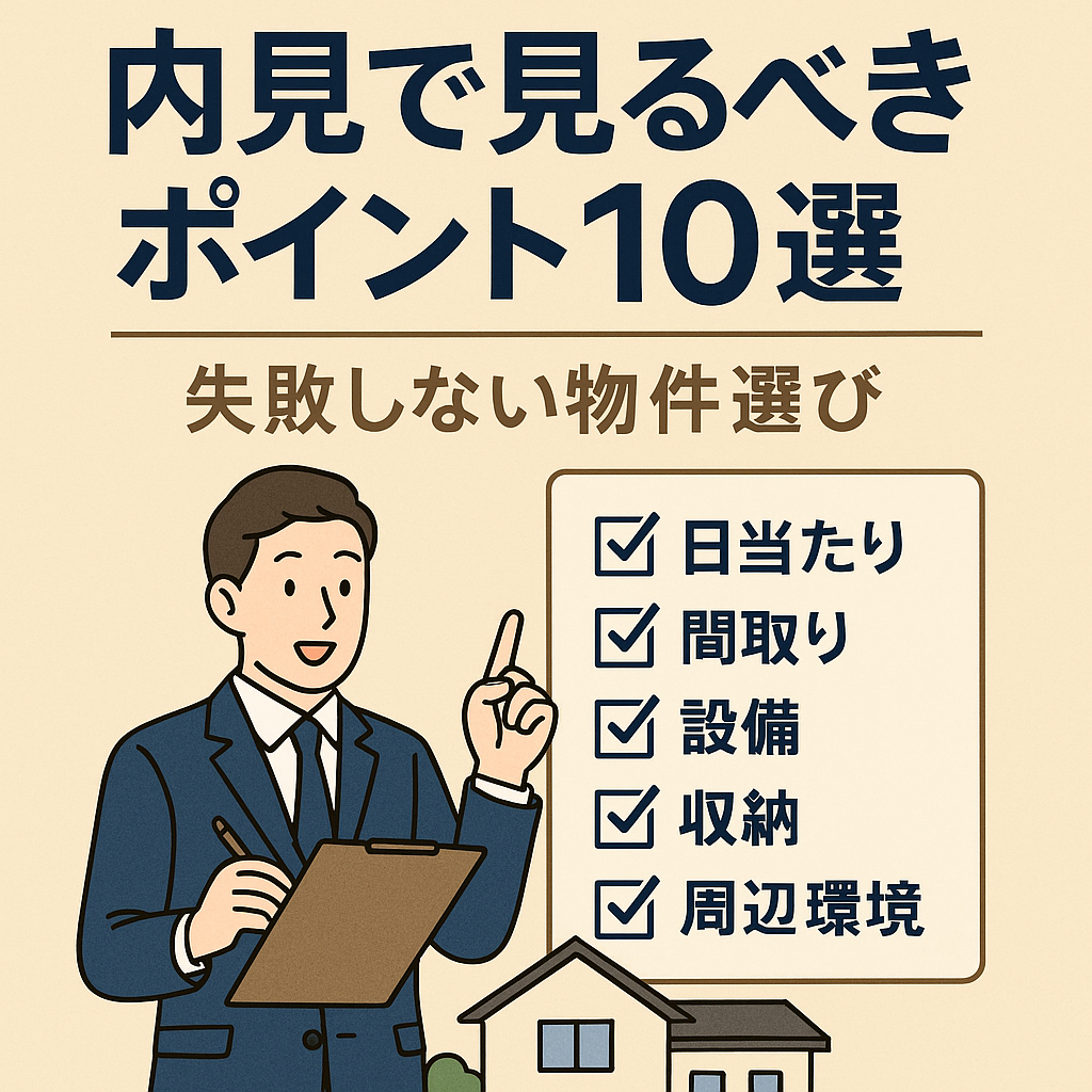 「内見」は、物件選びで後悔しないための最重要ステップです。図面や写真では分からない”現地ならではの情報”を見逃さないように、以下の10項目をしっかりチェックしましょう。