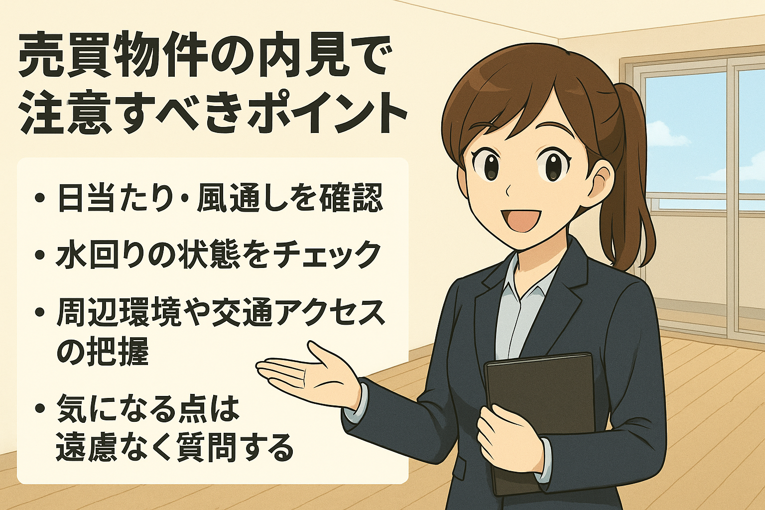 見るべきポイントを事前にリスト化し、感情だけで判断せず、冷静にチェックしていくことで、後悔しない物件選びにつながります。