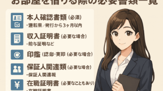 基礎知識 📝 お部屋を借りる際の必要書類一覧 1. 本人確認書類(必須)運転免許証健康保険証マイナンバーカード(表面のみ)パスポート(有効期限内)※顔写真付きの身分証明書が望ましいです。2種類求められることもあります。2. 住民票(発行から3ヶ月以内)賃貸契約時に必要なことが多いですコ... 基礎知識引越しの手続き